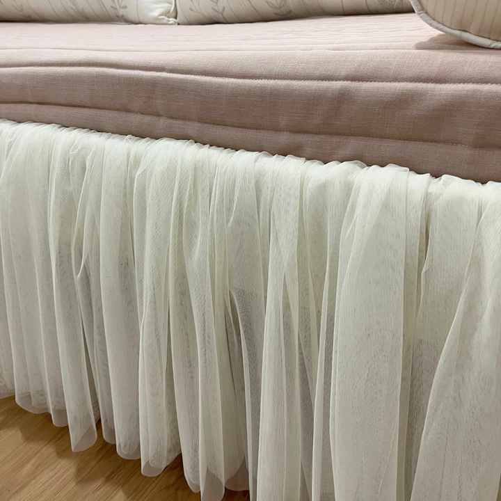 White Tulle Bed Skirt with One Side - Mom's Garden