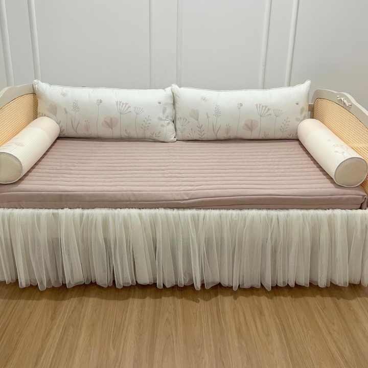 The Bed Skirt is an invitation to serene rest amid the lightness and poetry of the baby's room. Made with flowing tulle on a polyester base, it creates a subtle and delicate movement, reminiscent of petals dancing in the wind in a flower garden. 🌿🌼