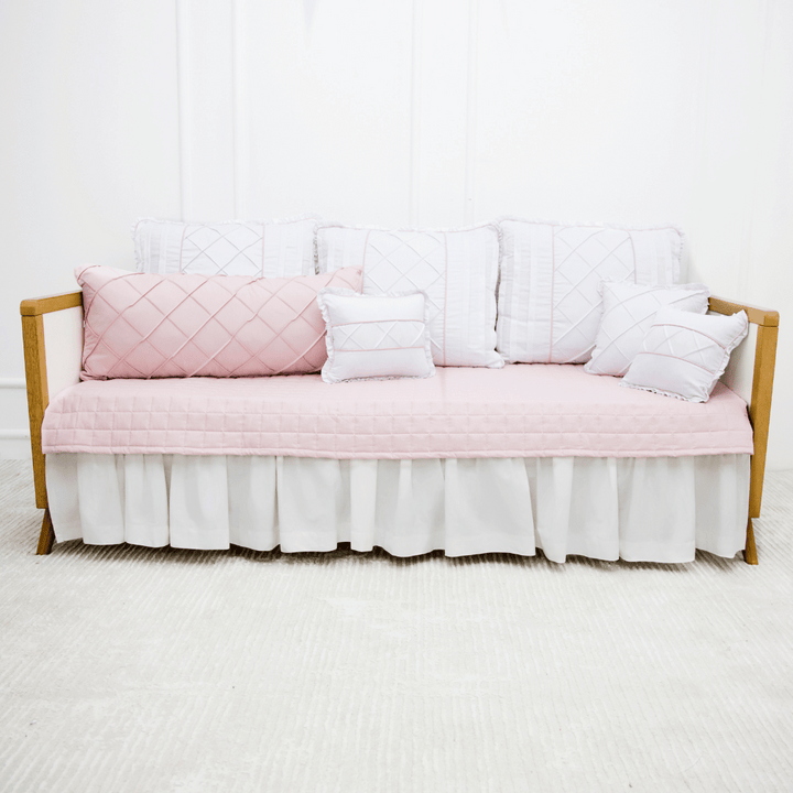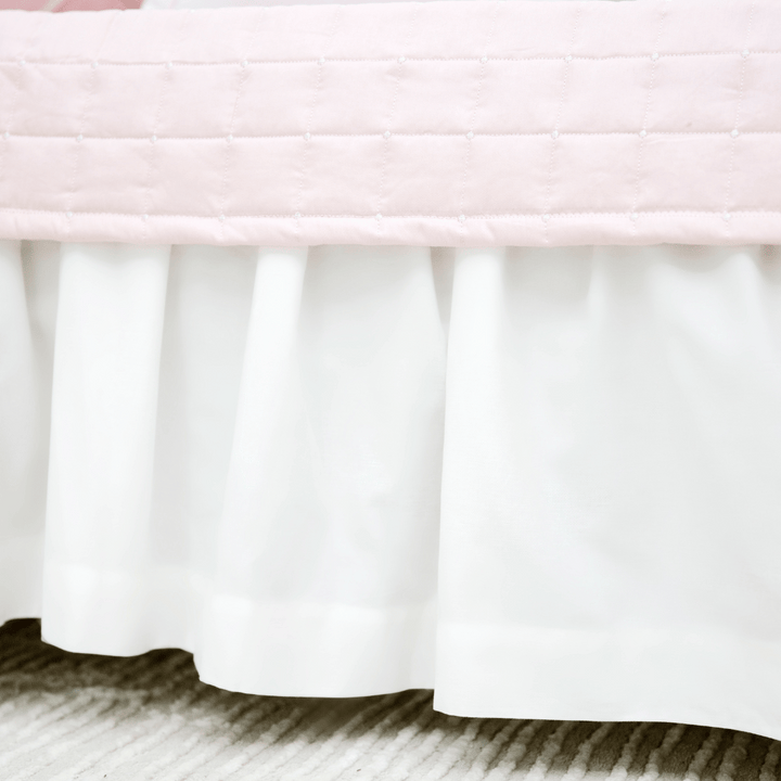 With a gathered finish and fine fabric , the bed skirt creates a delicate look that enhances the bedding and complements the crib set. The 300-thread count percale ensures not only beauty but also softness, strength, and durability for daily use.