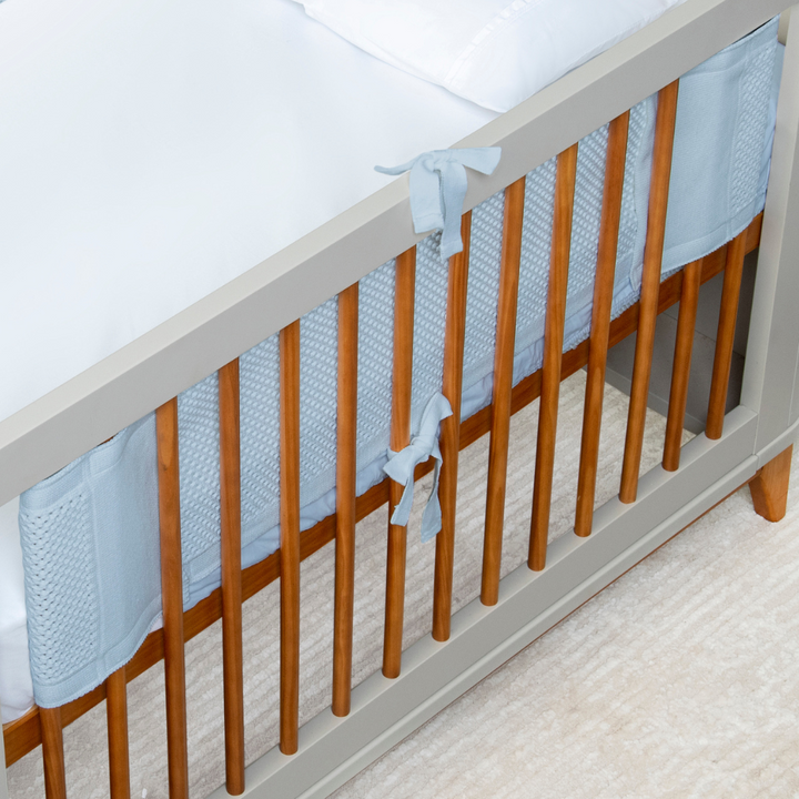 Breathable Flow Mesh for Crib Rails - 2 Sides, Delicate Blue Cotton Knit