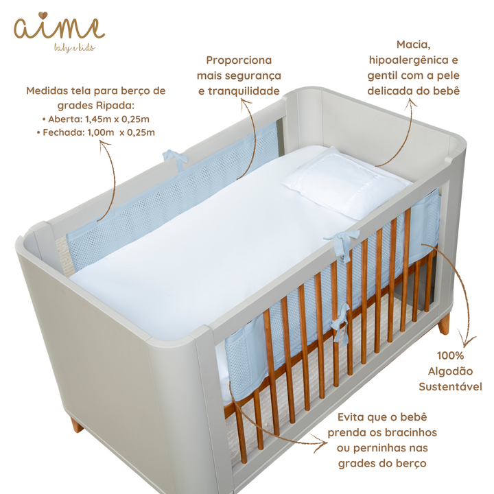 Besides being functional, its clean and delicate aesthetic adapts perfectly to the nursery decor, bringing comfort and protection to the baby's environment. 💙✨