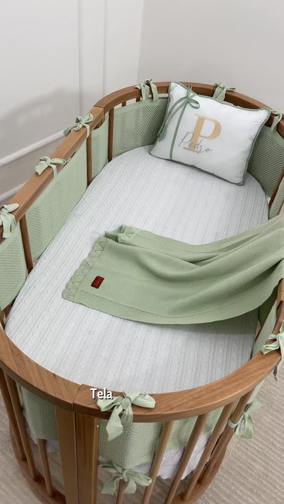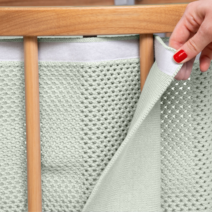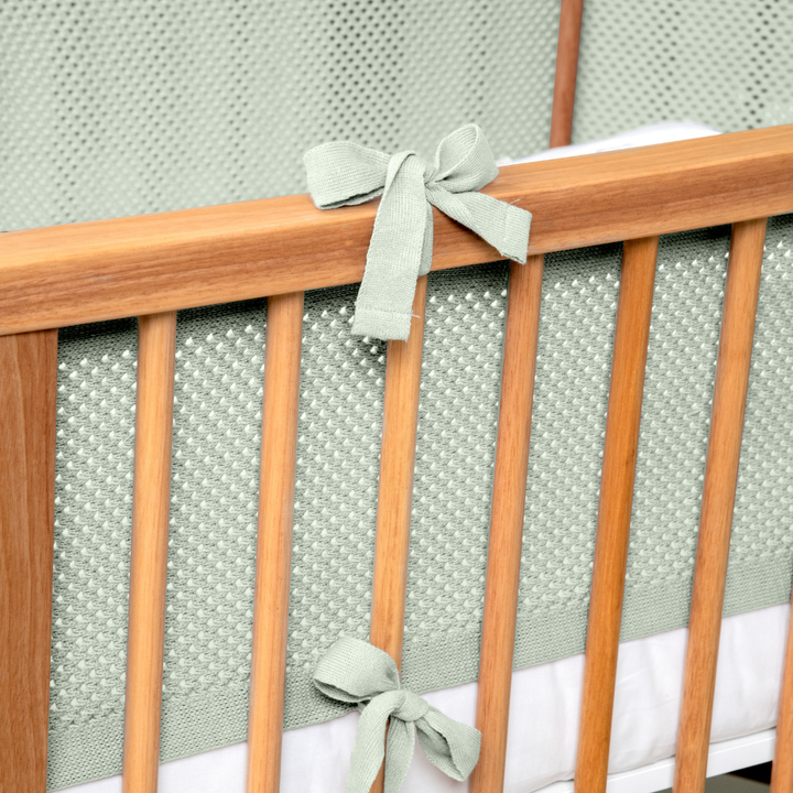 The Tender Greens Flow Breathable Screen was developed to provide your baby with safer, more comfortable, and peaceful nights. Made from 100% sustainable cotton knit , this screen prevents your baby from getting their arms or legs trapped between the crib bars, without blocking air circulation—promoting a comfortable, cozy, and soft-touch environment.