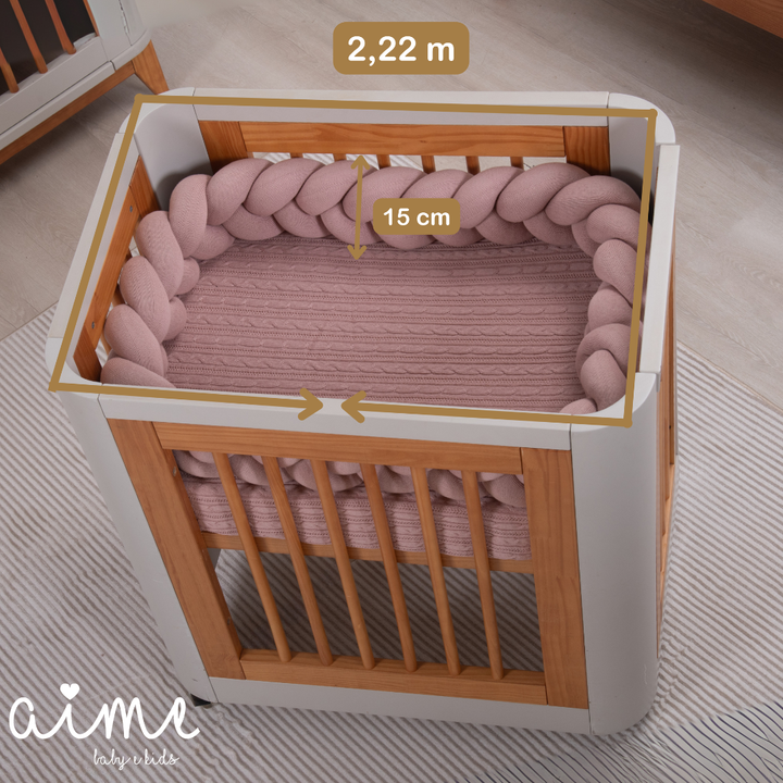 Mini Crib Protector Braid Knit Cotton Old Pink (2.22 m x 14 cm)