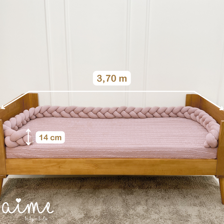 The Old Rose color evokes timeless sophistication and adapts perfectly to a variety of decor styles, from classic cribs to nursery beds. Whether used as side protection in the crib or as support during the transition to a bed, the braid accompanies baby's growth with beauty and functionality.