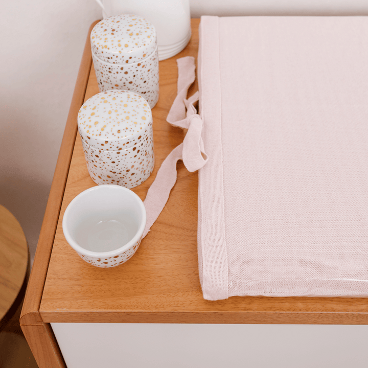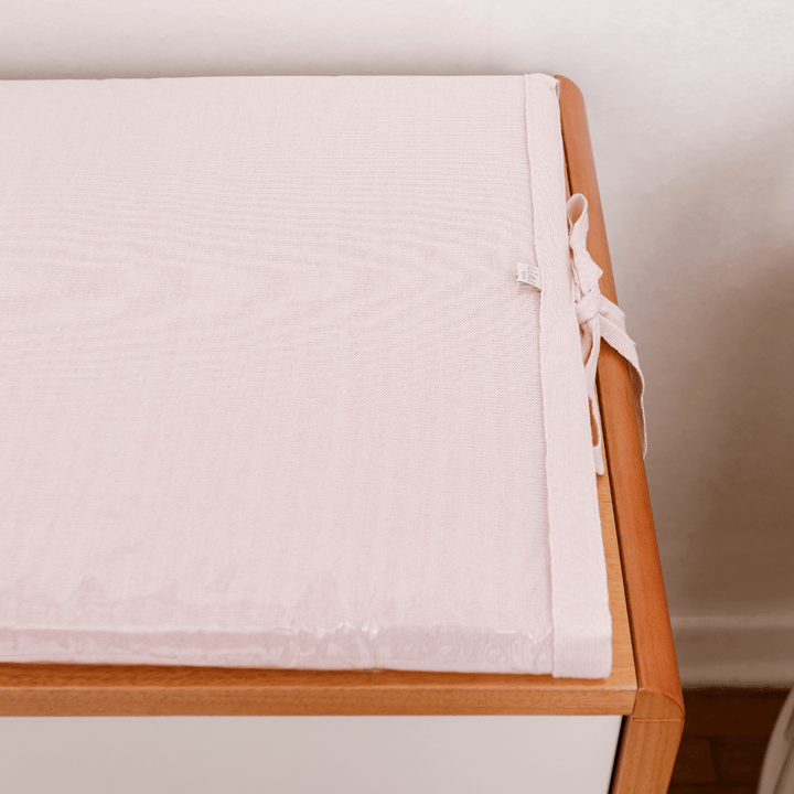 Delicate, functional, and responsible. The Pink Ballerina Changing Mat in Sustainable Cotton Knit is designed to accommodate the most intimate moments of care between mothers and babies. With a soft texture, comfortable padding, and a laminated cover, it provides safe and practical support during every change.
