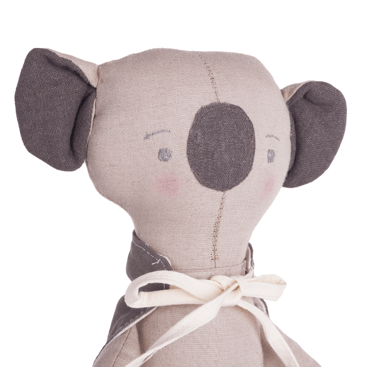 Gray Peter the Koala is here to win hearts! Made from soft synthetic linen fabric , this charming little animal wears a charming superhero cape , bringing a touch of imagination and fun to your baby's room.